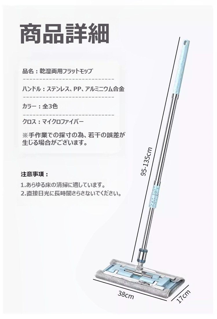 乾拭きと水拭きの両方に対応するモップの比較画像